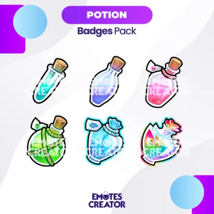 Give your greatest supporters some recognition and keep them loyal for longer with the Potion Twitch Sub Badges Pack.