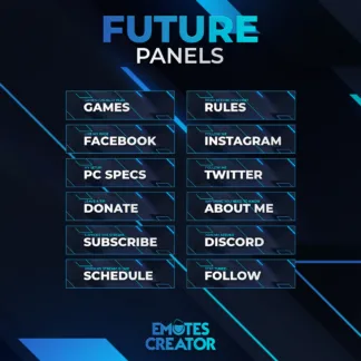 These panels appear under your screen while you stream. So, besides the info about you, there are other things interesting to viewers. You can dedicate one panel to your social media accounts. Or better yet, have one panel for each social media network. There can be a donation panel. Other panels are dedicated to the games you play, rules, your schedule, or your PC specs.